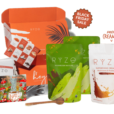 The RYZE Lasting Energy Bundle is ideal for those looking for daily rituals that support a healthy gut. immunity and all day energy without loading up on caffeine. Pair our best-selling mushroom coffee. less than half the caffeine of your average cup of joe with the RYZE 6-mushroom blend and our just as powerful chicory blend featuring the 6-mushroom blend and natural prebiotic superfood. chicory root.