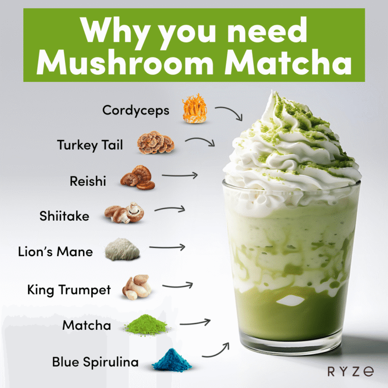 RYZE Organic Mushroom Matcha Starter Kit (60 servings)